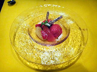 フランボアーズのソルベ500円 なんとなくできあい風ですがフルーツが添えてありました