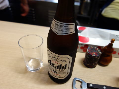 ビール(中瓶)470円を注文。酒類は現金前払い制
