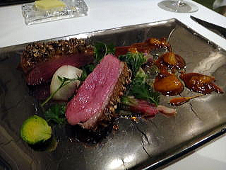 シャラン鴨肉のロティ デコポンのコンフィチュールと香辛料風味 旨みが凝縮した、しっとりした肉質が印象的