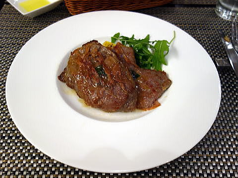 仔牛ロース肉のサルティンボッカ ワインがすすむ濃いめの味付け。メインが仔羊だったので予約したのですが。。。