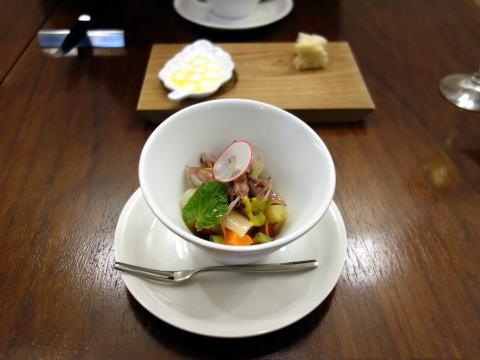 色々な野菜と富山県産ホタルイカのグリーンマスタードソース