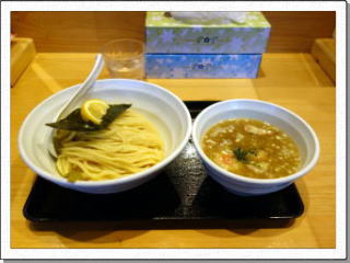 さっぱり系のつけ麺な気分のため、塩つけ麺を券売機で購入。アクリル板で仕切られたカウンター席に案内されました。麺は有名な製麺所のものを使用。のど越しの良い、つるつるした麺は軽めの食感。つけ汁はさっぱりした味わい。柚子胡椒とレモンで辛さと爽快感を演出。スープ割りはかつお風味の出汁で美味。看板はつけ麺屋さんですが、ラーメンを注文する方の比率も高かったような。ラーメンも美味しそうでした。
