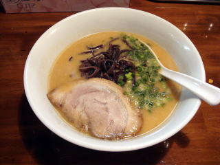 入谷交差点のかどにあるお店です。とんこつをはじめ、味噌、醤油、塩およびつけ麺とメニューが豊富。麺もスープにあわせ、玉子麺や博多麺があります。基本のとんこつらーめんをいただきました。ちょっと粉っぽさのある細麺にクリーミーな豚骨スープ。豚骨の匂いがなく、万人向けのスープ。どことなく牛乳の風味がする不思議なもの。具は、チャーシュー、木耳、ネギ。