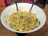 ドイツで「nipponoodles(ニッポヌードル)」という屋号のお店を展開している日本人オーナーが、2016年2月に恵比寿に支店をオープン。このお店は、ドイツの本店同様にまぜそばだけではなく、お酒も楽しめます。店先にはヌードルバルなる看板もありました。メニューが豊富で何をどう注文したらよいか迷いました。来店するお客さん毎にメニューの説明をされていたような。とりあえず、豚まぜそばを注文。台湾まぜそばや合え麺とは異なる独自の味わい。鰹節や煮干といった和風出汁を感じないところが差異化のポイントかと。箸もありましたが、フォークとスプーンで食べるところも新鮮。同行者の和牛まぜそばを味見しましたが、こちらのほうが独自性が強く好みな味わいでした。スパイスが充実していましたので、自分流のまぜそばに仕立てることができるのもよかったです。