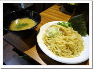 濃厚鶏出汁が自慢のお店。多くのお店は、鶏白湯スープには、塩味を選択しているような。このお店は、醤油味をウリにしている数少ないお店と思います。どんなラーメンなのか、興味津々で訪店しました。訪店時は店外に5名の待ち客。お客さんは、会社就業後の会社員風の男女が半々の割合。人気店です。入口の食券機でつけそば(醤油)と濃厚鶏骨醤油そばを購入。醤油そばは、かなり濃度のある醤油スープに中太もっちり麺の組み合わせ。かなり重めのスープに、醤油タレが濃厚さを助長する感じでかなりストロングな仕上がり。たぶん、塩味だったら違った印象になったような。つけそばは、醤油そばよりも濃度の低い鶏出汁のつけ汁にもっちりした平打ちの麺の組み合わせ。麺が水でよく〆られているせいか、こちらのほうが軽めの味わい。黒七味や山椒を麺にふって、味に変化をつけながらいただきました。つけそばのほうが好みかなぁ。