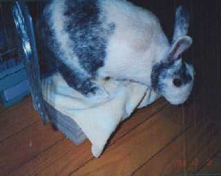 大山敦子さんちのぴょん太くんです。 ぴょん太くんはオスで、トイレもきちんと覚えているし、とてもおりこうさんなウサギだそうです。それに、小さい頃から舐めウサギだそうです。とっても可愛ゆいよ。