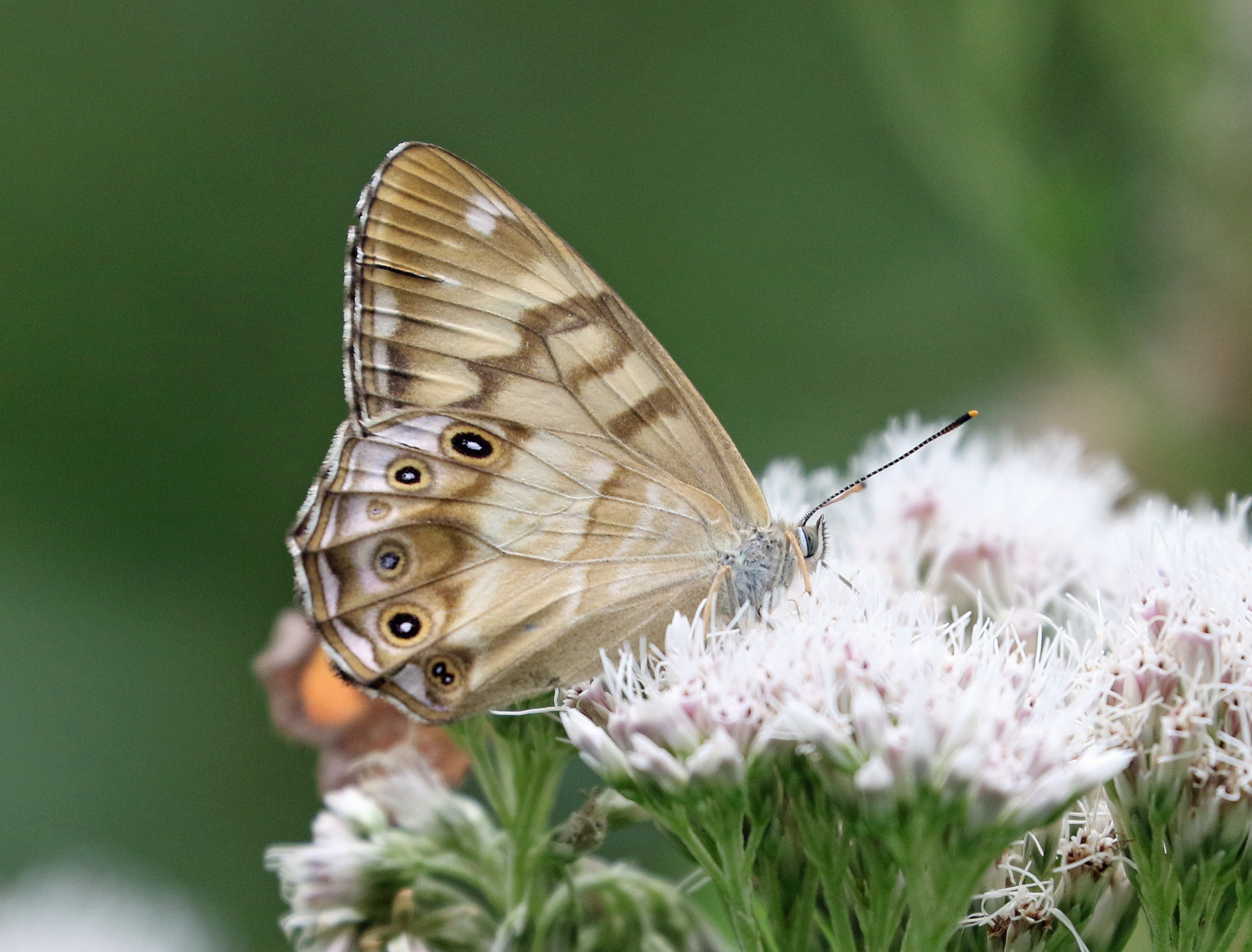 眼状紋といえば代表はジャノメチョウの仲間だろう。「蛇の目蝶」と呼ばれるように大きな眼状紋を有する種、後翅に沢山の小さな眼状紋が並ぶ種など実に様々で、カモフラージュとしての2種類の目玉模様の役割を上手に使い分けているようだ。