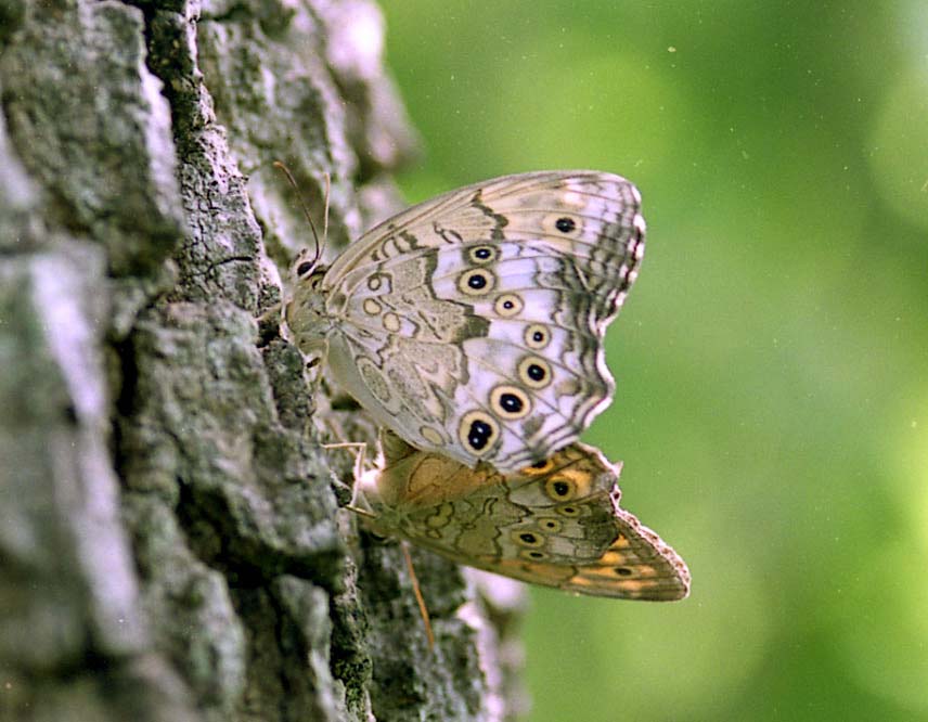 もう一つは小さい目玉模様のケースである。動物が獲物を襲うときは必ず頭のほう、すなわち目玉のあるほうを狙う。つまり、小さい目玉模様はむしろ攻撃の対象となる。鳥は小さな目玉模様を見ると蝶の頭だと思って嘴で突付いてくる。蝶は多少傷ついても、鳥に小さな眼状紋のある後翅を突付かれている間に逃げ出すチャンスがあるというわけである。