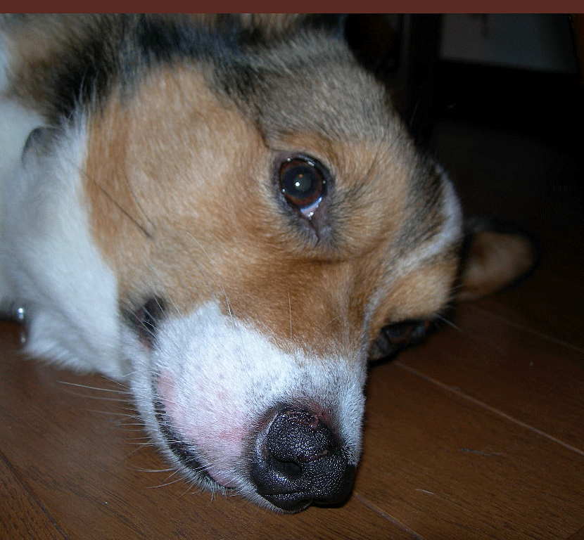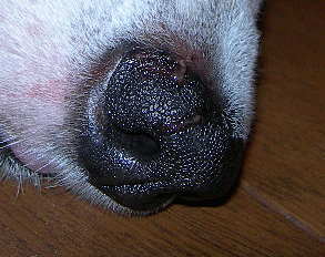 ボーダーコリー君の先制パンチを受けちゃって鼻先に数本の切り傷が・・・