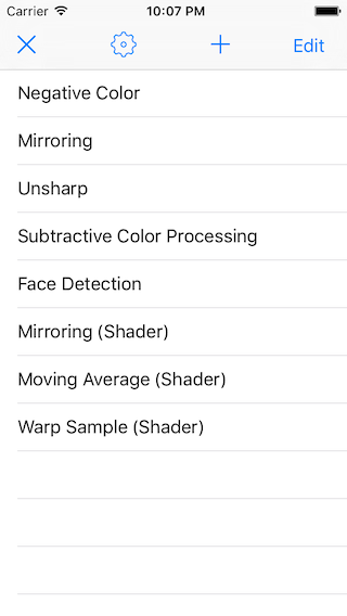 ユーザ定義のフィルターのリストを表示しています. メインビューで "Filter" をタップすることで表示されます. フィルター名をタップするとフィルターの定義を編集できます.
