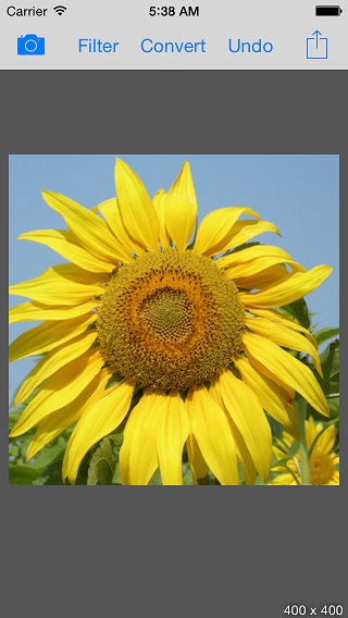 This view is shown after app launch. The size of image is shown at the right-bottom corner.