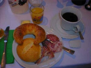 2日目 Wiesbaden朝食 フランクフルト近郊のウィースバーデンのホテルで。 RAMADAチェーンという案外有名なホテルチェーン。 「デンバーとほほ日記」で泊まったところもラマダイン。パンフレットを見る限りでは無関係のようでしたが・・ |