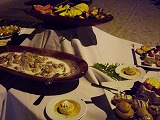 無料でカクテルを飲みアラカルトを食べながら、他の宿泊客とコミュニケーションをとれます。海苔巻きやカルパッチョなどがつまめます。