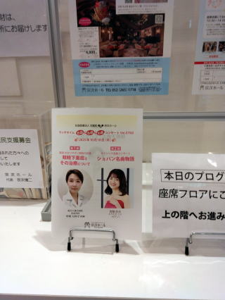 ←今日は、宮脇彩永さんのコンサートがあり、宗次ホールに伺いました。