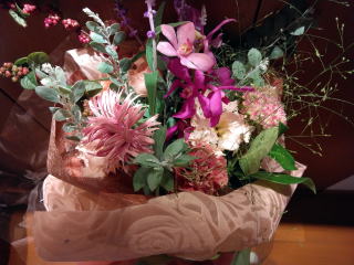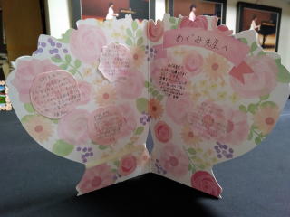 ←生徒さん達から誕生日のお祝いに素敵な花束や、カードを頂き、有難うございました。