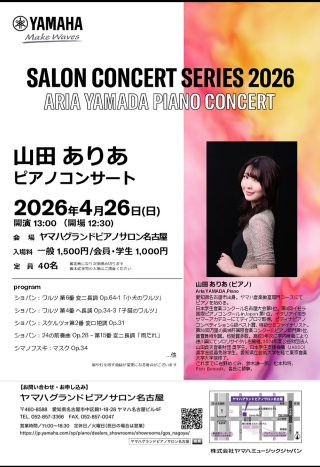 山田ありあさんのピアノコンサートが開催されます。