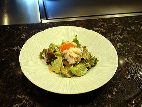 料理は特選花コース 11,340円(税込) 海鮮サラダ(ズワイガニとカニ味噌ソース)