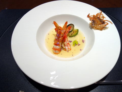 塩アイスをのせて出来上がり。良い食材を使い、スタッフのサービスも良く、楽しい時間を過ごせました。