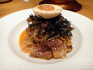 完全予約制の焼肉屋さん。予約時にお肉(おまかせ)も注文します。5千円、8千円、1万円の3種類。時間制で2名は90分、3名以上は2時間。カード払い不可。日本酒、焼酎等はありません。制約が多いのに人気のお店。お肉は、ハラミ、ランプ、カイノミは塩で山葵を添えて。サーロイン、トンビ、イチボ、シンシンはタレ。お刺身の舟盛りならぬ、お肉の箱盛り状態。カットは大きめ。老人や女性にはきついかも。ナイフあるのかなぁ。頻繁な網交換はありがたかったです。ビビン麺は不思議なまったり感があって好み。冷麺は、お上品な器でヘルシーな感じ。本日は200gで満腹。なんでかなぁ