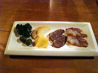大井町の大井三ツ又交差点のコンビニの脇を入ると大人の秘密基地がありました(笑)。燻製をつまみに、ビール・焼酎・ウイスキーその他いろいろなお酒が楽しめます。燻製にもいろいろ。例えば、たくあん。印象に残った料理は、うずらの燻製。薫りがすごくよかったです。それと、カニのオムレツリゾット。ふんわかした玉子、カニの風味が甘いソースと絡まって美味しかったです。 店内にあるロフトが個室になっているようで、4人以上の気のあった友人のあつまりなら最高かと。