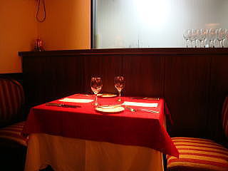 ソニー通りにある20席前後のフレンチのお店。赤を基調に暖色系の店内は、灯りが落とされ、落ち着いた空間。居心地いいです。
