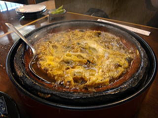 柳川なべ980円。熱々で登場!どじょうは開いたものを使用。ごはんが欲しくなる味わい