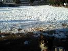 公園には昨日降った雪がカチンコチンに凍っています!いつもの朝の散歩だけど、ミルクチョコは冷たい地面に困惑気味・・・ガンバレー!