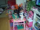 帰る間際に子供用のおもちゃに没頭するリンリンでした。 |