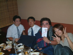 | 前会社より仕事をもらって名古屋に帰郷したときに、 其の会社の後輩・イシカワ君の入籍祝いという名目で飲み会がありました! イシカワ君は私より早く子持ちになるいわば先輩となるわけですね! まぁ、出来ちゃった結婚ですが、石川君らしいといえばらしい。 これからより大きな人間として成長できるようにがんばってね! (体型の話じゃないぞ!) イシカワ君を取り囲んでみんなでお祝いワイYです! 久々の大坪さんや伊藤元支店長、カワイイE珠里も居ます! |