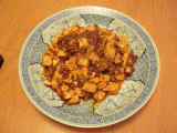 | 陳さんの麻婆豆腐 フライパンに豆腐をいれレトルトをかける。箱に書いてる通り。かなり辛い! |