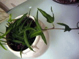 | ぐんぐん伸びて、垂れ下がり系。挿し芽はことごとく失敗。ここにいる分には元気もりもりだけど根から植え換えてもダメな感じ。難しい。。。 |