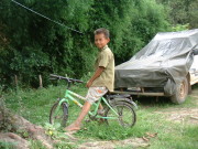 魔のバス。ぎゅうぎゅうたこ詰めのまま、チェンマイからパイの山道数百キロを延々と走る。ジイチャン(僕の足に寄りかかっている)は横でゲロを吐き出すは、椅子は板一枚でカバーが剥がれ硬いわで、泣きはいりました。バスは日野自動車です。(いつのか分からんけど)見た目はきれいそうに写っていますね。