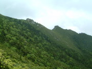 頂上付近。千代ノ吹上と砂払ノ頭が見えます。2つのピークの間からの斜面はハゲちゃっています。こちらは北側なので、反対側からの南風に当たりすぎてハゲちゃったのでしょう。 |