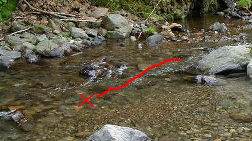 写真では分かりにくいけどが、支流の分岐で、ここは水深10センチである。