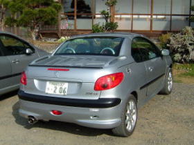 | 一方外では車談義の進行中・・・(^o^)。 RCのテールが移植されたHITOMIさんのCCです。 黒いバンパーに黒いBMW用トランクスポイラー、そこに真っ赤な新テールがお似合いでした。 このテール光ると、下向きに・・・を食べまくるパックマンに似ていませんか? あの音楽が聞こえてきそう。 (写真提供:yayaさん) |
