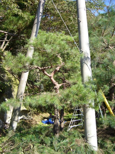 <剪定は上からしますので、枯れ枝を外しながら、松のてっぺんに登ります>