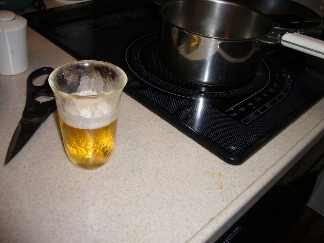 夕食はビールを飲みながら作ります。味見がつまみです。