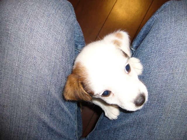 今日、ペット・ショップに行ってジャック・ラッセル・テリアを買いました。6月12日生まれのメスで、名前は「桃子」にしました。店員のアドバイスで10日間はサークルの中で飼うことにしました。夜はケージの中で寝かせています。