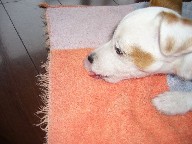 生後3ヵ月を過ぎたので、そろそろ首輪に慣れさせようと思い、昨日初めて首輪をしました。着けた時、10分間暴れ回り取れないので後は、不貞寝をしていました。動くと首輪が気になるようで、フリーズ犬になってしまいます。動かないので、とても飼い易い犬に大変身です。桃子の首輪は、孫悟空の”緊箍児(キンコジ)”(頭にはめた輪っか)のようです。