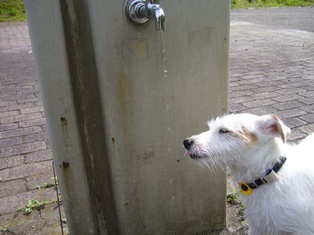 <乾いた喉を潤しています、ちょっぴり舌が出ています>