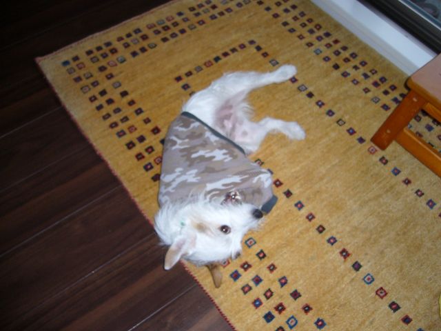 桃子が座っている絨毯は、妻が桃子の休む場所にと買い与えました。今使っている桃子のベッドが妻にはお気に召さないようです。一緒に買いに行ったのですが、この手織りの絨毯は、私は目をつぶって見ないふりをしてしまう価格でした。まあ、桃子を飼うためにこのマンションを購入し、私と妻は桃子の犬小屋に住んでいる訳ですから・・・。今日は犬の日(ワンワンワンの日)ですから、散歩をいっぱいさせましょう。