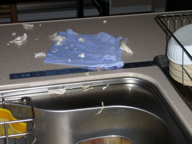 19日の夜は、流し台に登り、生ゴミに興味を示していました。証拠写真を撮って、きつく注意しました。流し台から下ろし、TVを見ていたら後からカサカサと音がします。キャベツの芯などを食い散らかしていました。テーブル、流し台に登る都度、叱っているのですが、桃子に理解してもらえません。生ゴミは、常にかたずけておくことになりました。