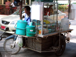 こんなカンジで、オッサンが売りにきます。キカイダのサイドカー状態で屋台が右側についてる。ちなみにタイも左側通行です。