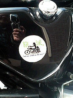 昨年買った「ローテクパワー」ステッカーを貼って、愛機が「旅仕様」であることをアピール。