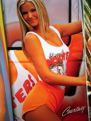 左)結局、買いました。「フーターズ2005年カレンダー」。10ドル。
