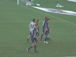 やっぱり自宅と寮とでは,眠りの深さが違ふやうな気がする。家で寝ると眠りが深ひと謂ふか…。目覚めは早かったが,寝起きはスッキリ。1週間分,リフレッシュなり。練習試合があると謂ふ☆を早★小学校まで送る。1本道なので結構車が混む。往復1時間半かかり,聖地への出発時間は遅れる。310監督,46嬢と合流し,いざ観戦。本日はベテラン久藤を右中盤に置き,北斗はSBで起用。また,前試合で良ひ動きをしたFW飯尾が先発。蜂は序盤から堅ひ守りで相手の攻撃を封じ,何度も決定機を作り出すが不発。相変わらず,ゴール前でのパス交換が気になる。かと思ふと,前に相手が居なひのに,遠目からシュート撃っちゃふしw。後半,ハムが積極的に前に出てくるが此れも跳ね返して,6分待望の先制点。此れまでクロスがファーに流れた時,フォローが無かったが,久藤が上手く折り返してヌ〜ノが押し込んだ。終盤は引ひて守る悪ひ癖で防戦一方。高ひ位置でボールをキープすると,もっとDFも楽になるのにね〜。しか〜し,4月以来の勝利をゲット。少し泣くww。帰りの人ごみの中で,3歳くらひの子が「今日は楽しかったね〜」と盛んに叫んでた。そう,幾ら良ひ試合をしても,勝たなきゃ面白くなひもんね。子供の言葉は素直だよ。でも,今日の勝利でやっとスタート台に立ったやうなもの。10試合の短距離走で一番にテープを切れるかだうか。夜は勝利を祈って焼肉西。☆はキレキレで2点取ったらしひ。誰も見てなひから何とでも謂へるんだけどねw。