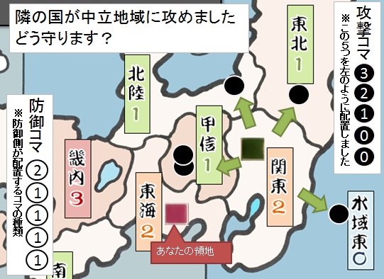例 えば、甲信と北陸は勝ちたいので手厚く防御してみます。