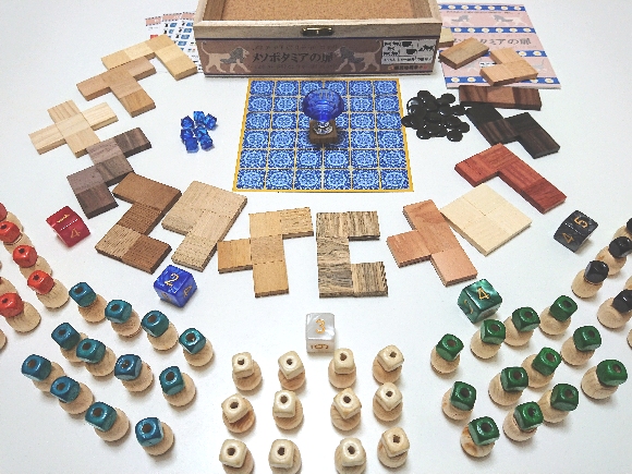 いろいろな木材の種類を使った木製ゲーム!遊び方は5つだけじゃない! ゲームマーケット2018秋の予約特典として1・2人用協力型バランス「セミラミスの空中庭園」が付いてきます。さらにチラシ、HP(ここ)などで追加のゲームが遊べてしまいます!