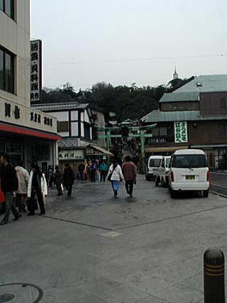 橋を渡りきると、正面に江ノ島神社へと続く階段。