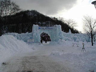 まだ陽も高いんで、支笏湖まで軽いドライブ。湖畔では氷涛まつりが実施されていた。